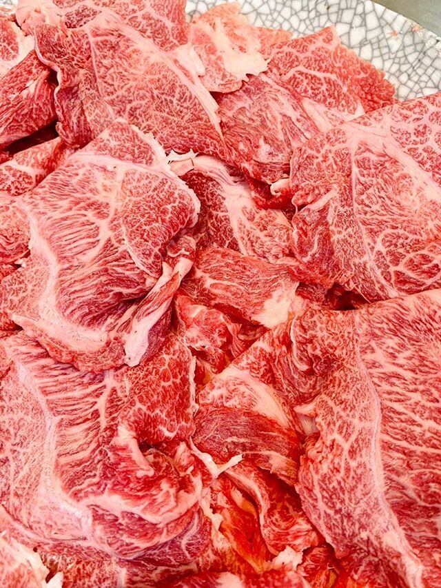 仙台牛の特選切り落としです。 焼きしゃぶ・すき焼き・しゃぶしゃぶ・ホットプレートを使った焼肉・肉じゃが・アスパラ等の肉巻きetcの万能選手 特におススメはプライパンで軽く塩コショウで炒め皿に盛り付け味ぽん酢と大根おろしで! 夏の暑い日は最高のごちそうです。